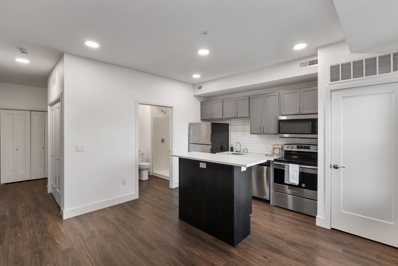 Apartment Includes Central HVAC, Private balcony & a fully equipped kitchen (Fridge, Stove, Dishwasher, Microwave)