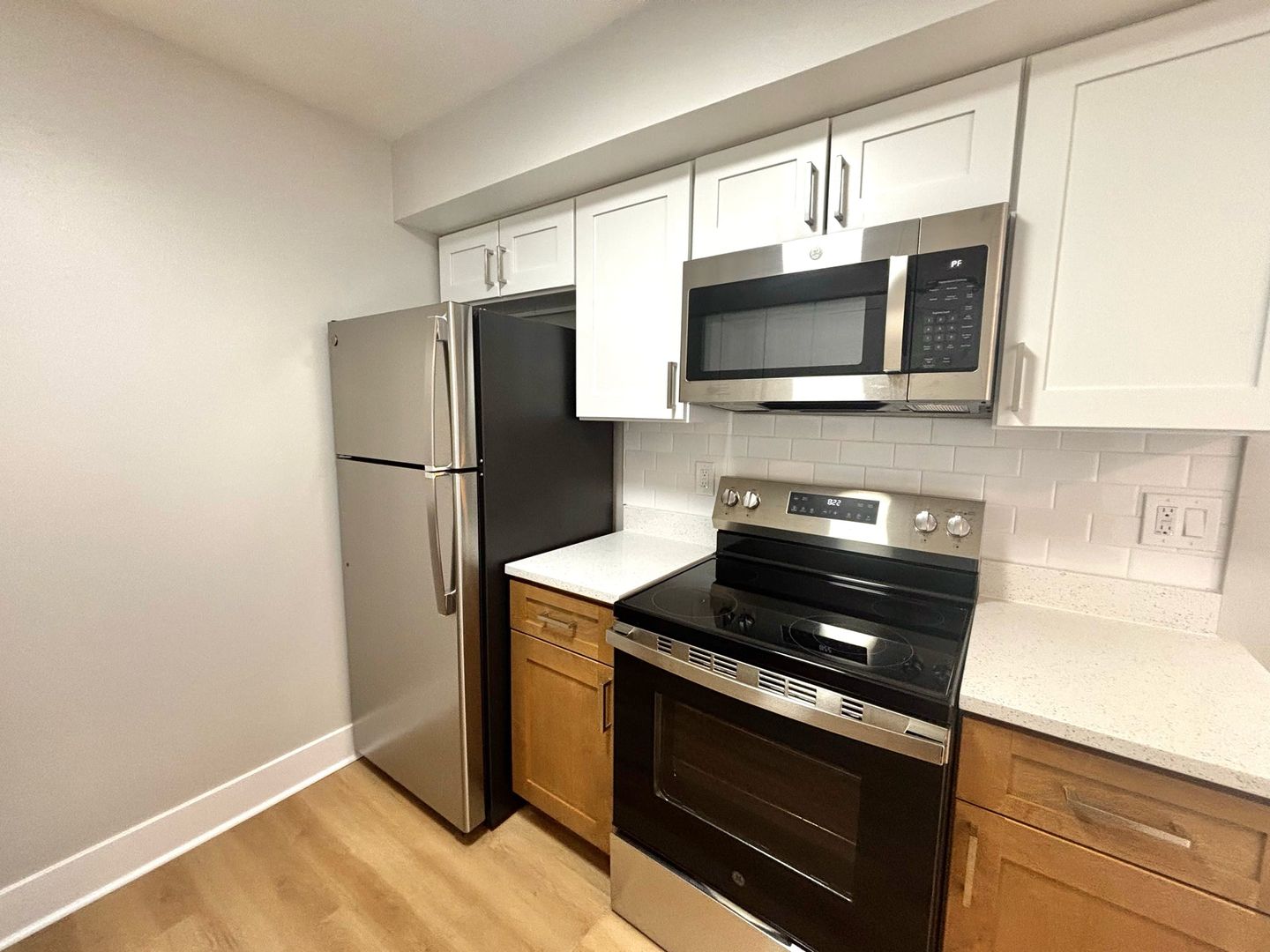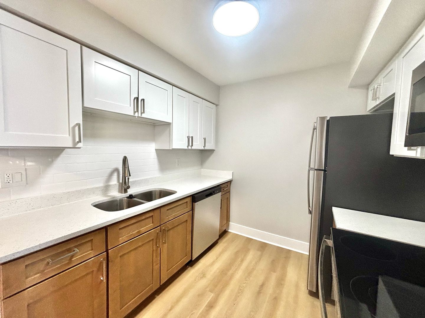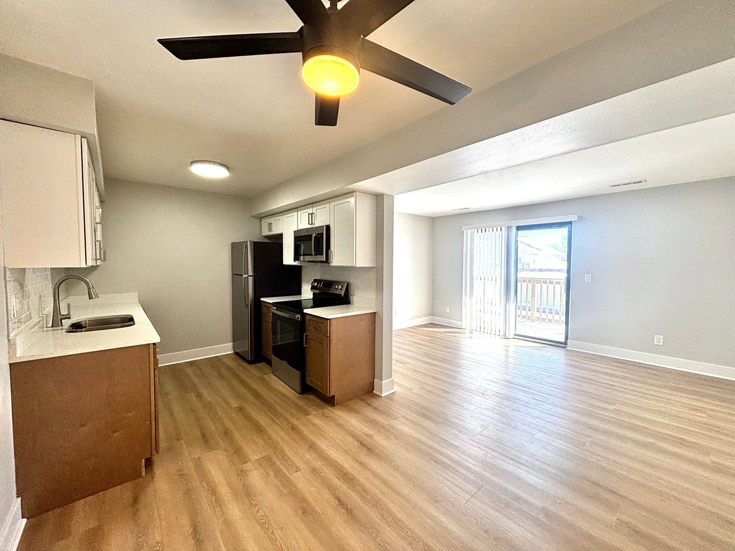 Step into a modern living space in our apartments. The flooring features a blend of vinyl and carpet, combining style and practicality. The bathrooms and kitchens have been updated with fresh paint and stain, creating a contemporary feel.